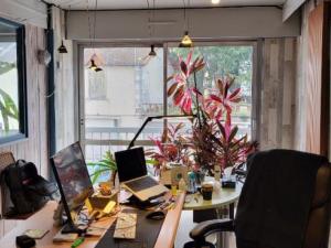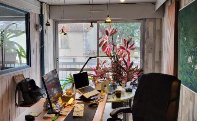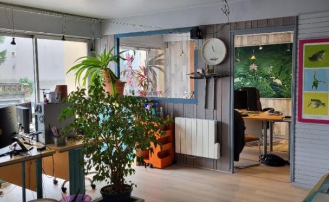 Au 1er étage d'un immeuble de standing composé d'un grand espace de travail (avec sanitaires ) et 3 espaces de co-working idépendants (loués) ; revenus 780 euros / mensuel .