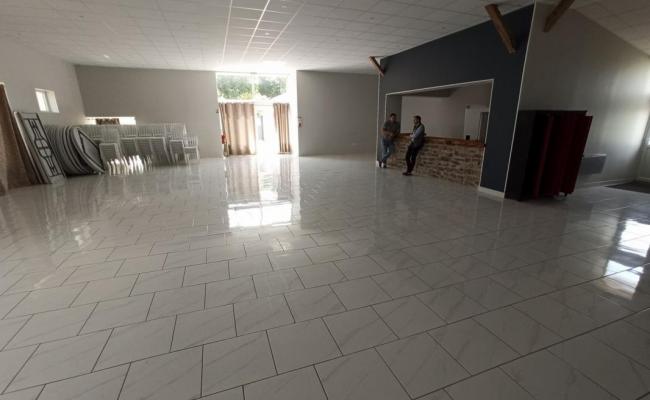 LOT 1: Sur un Terrain d'environ 630m2, ancienne Grange admirablement rénovée en Salle de Réception d'environ 263m2 (Jauge à 400 personnes) adaptée PMR, disposant d'une Cuisine totalement équipée (Batterie complète) et immédiatement opérationnelle (Piano avec extraction aux normes, Fours, Frigos, Machine à Laver...), de Réserves, Vestiaires, et de Sanitaires accessibles PMR. Possibilité de Reprise de 200 chaises 'Napoléon', 30 tables (15 rondes+ 15 rectangulaires), Vaisselle et Couverts pour 200 convives, Chariot et Tivoli, soit 15.000EUR de Mobilier et 15.000EUR d'Équipement de Cuisine. Chauffage électrique.