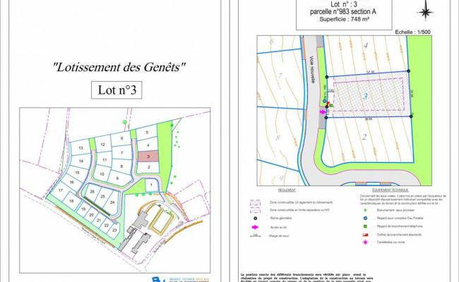 Dans lotissement nouvellement créé, agréable parcelle plate de 748 m2 viabilisée.