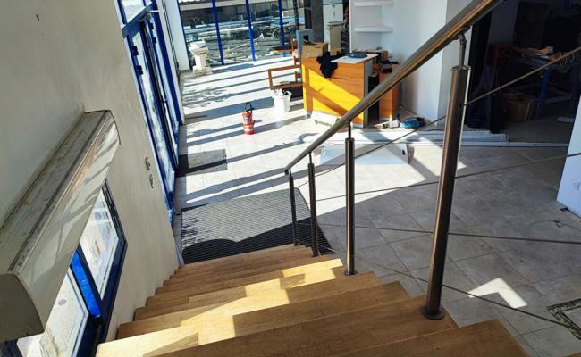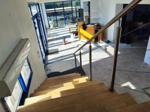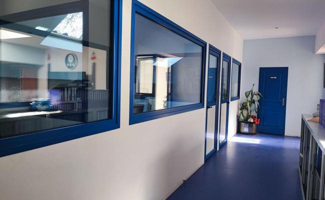 5 bureaux au total, un accueil avec vitrine, un espace atelier ou entrepôt avec porte sectionnelle et une salle de réunion.