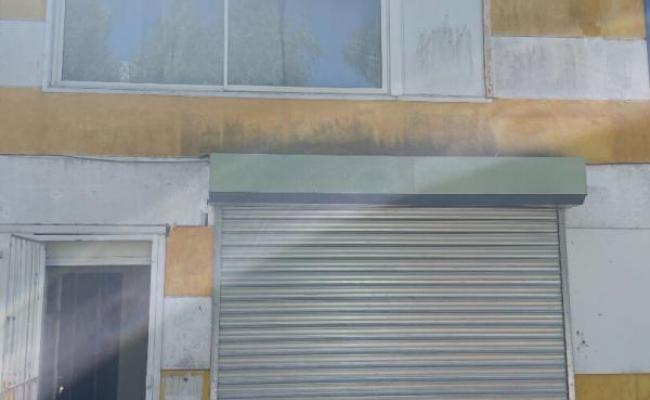 Petite porte sectionnelle à l'avant du local (Des véhicules type utilitaire peuvent rentrer).