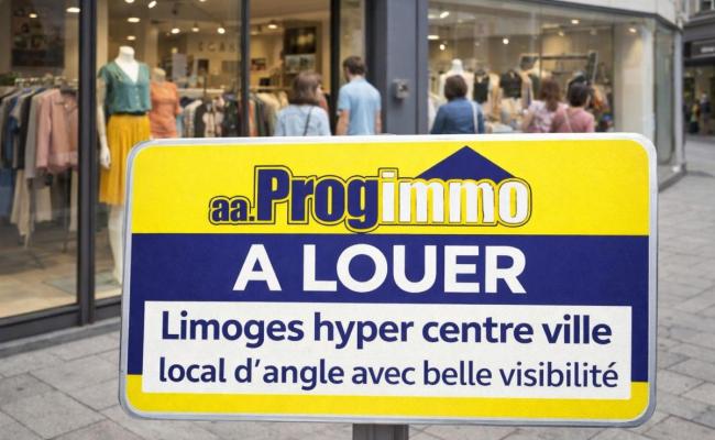 L'Agence Aa Progimmo LOUE : AU CENTRE VILLE DE LIMOGES , un local commercial en angle, Belle visibilité avec grande vitrine , sur emplacement N°1 BIS .